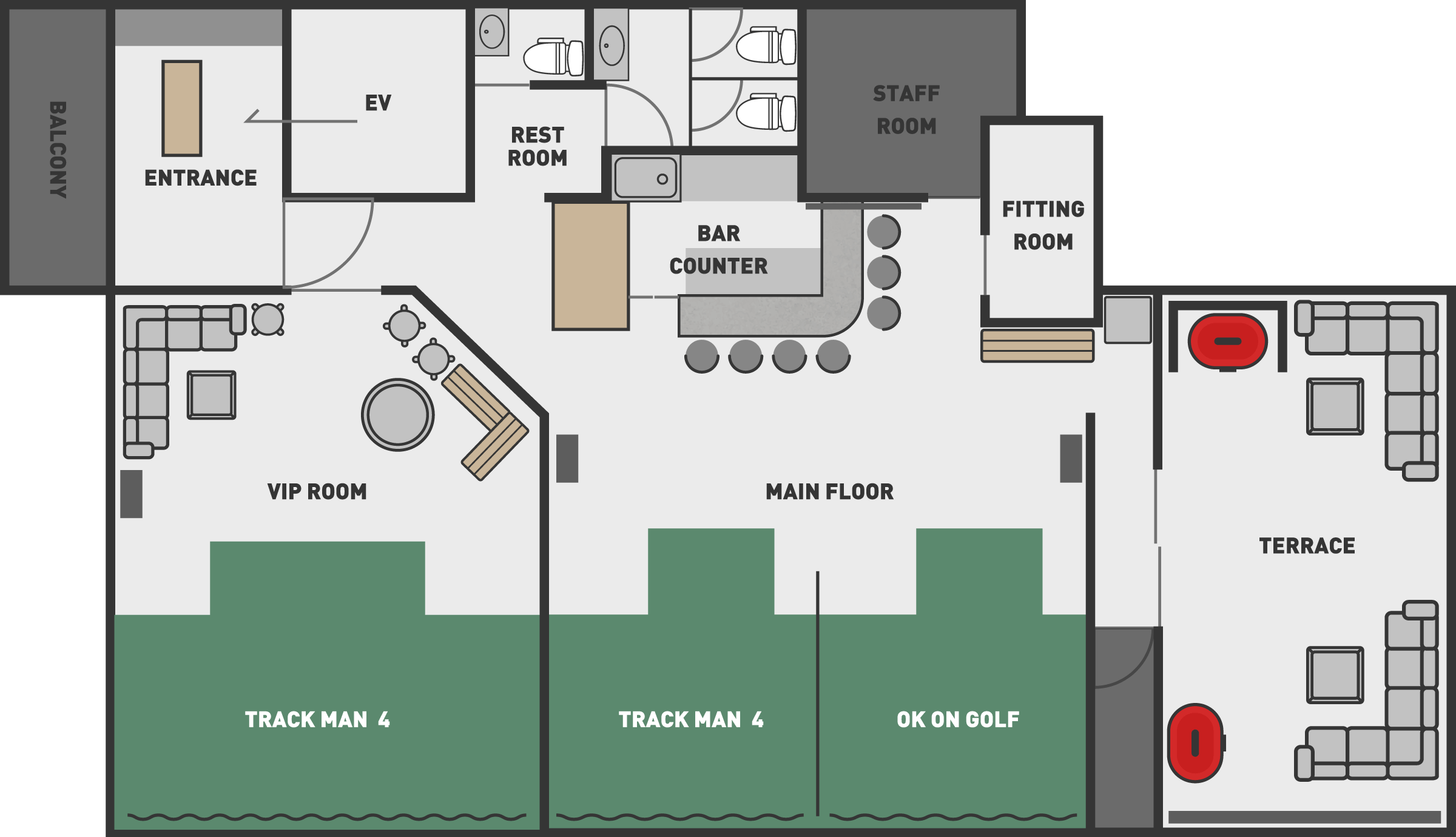 ワンランク上のインドアゴルフをご提供!内装はラグジュアリーでおしゃれな雰囲気。テラス完備の贅沢なお店。